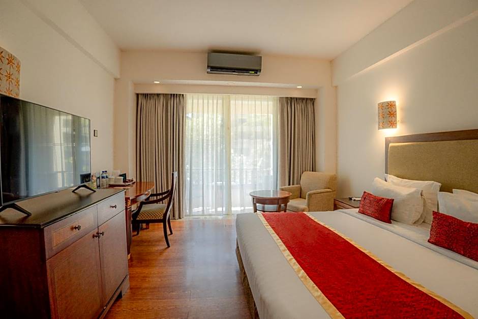 This contemporary-style air-conditioned deluxe room opens up to views of the garden. It is fitted with a flat-screen satellite TV and a mini-bar. The private bathroom includes a bathtub.